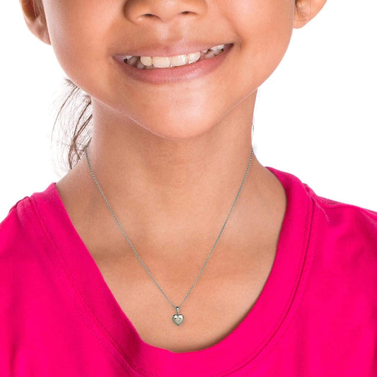 Simulated Peridot Birthstone Children's Heart Pendant in Sterling Silver