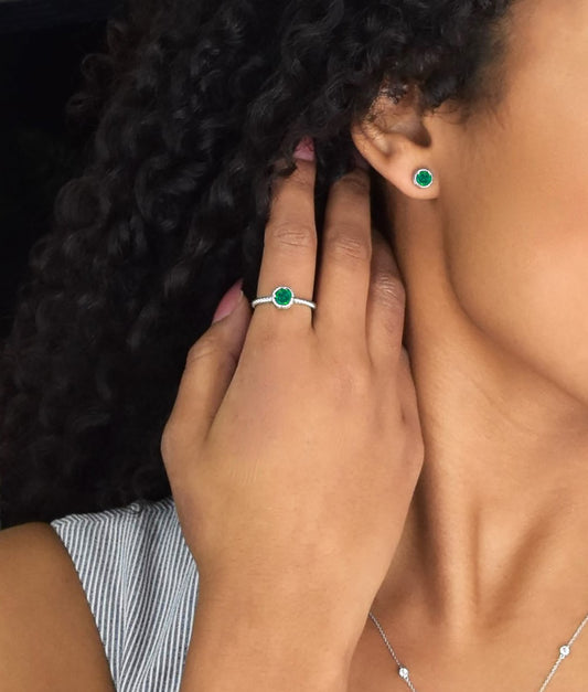 Lab-Grown Emerald Gemstone Rope Halo Solitaire Stacking Ring in Sterling Silver