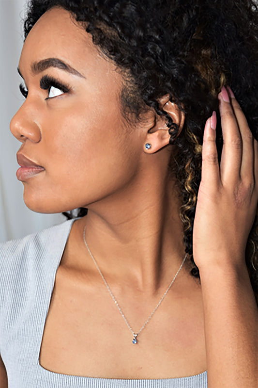 Genuine Aquamarine Petite Twist Solitaire Sterling Silver Stud Earrings