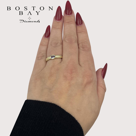 Oval Amethyst Ring in 14K Yellow Gold Plated Sterling Silver