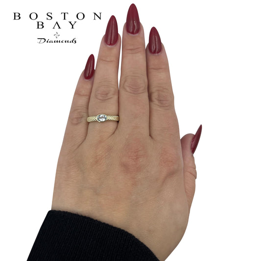 Oval Blue Topaz Ring in 14K Yellow Gold Plated Sterling Silver