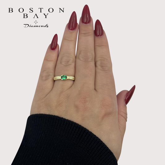 Oval Lab-Grown Emerald Ring in 14K Yellow Gold Plated Sterling Silver