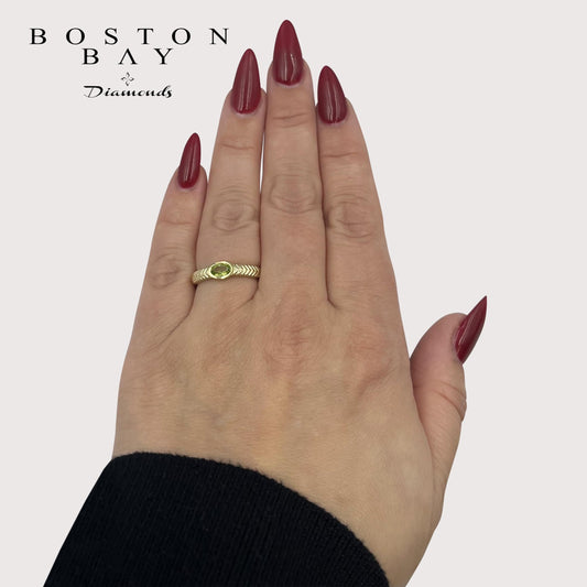 Oval Peridot Ring in 14K Yellow Gold Plated Sterling Silver