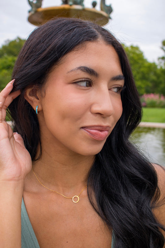 Turquoise Enamel Reverisible Huggie Hoop Earrings in 14K Yellow Gold Sterling Silve