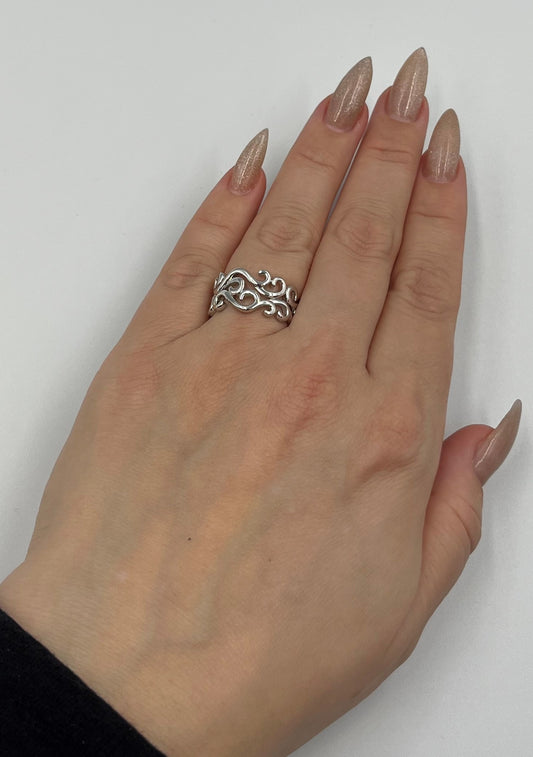 Sterling Silver Open Linked Heart- Wide Band Ring