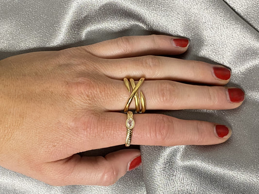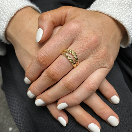 Crossover Stack Ring in 14K Yellow Gold Plated Sterling Silver