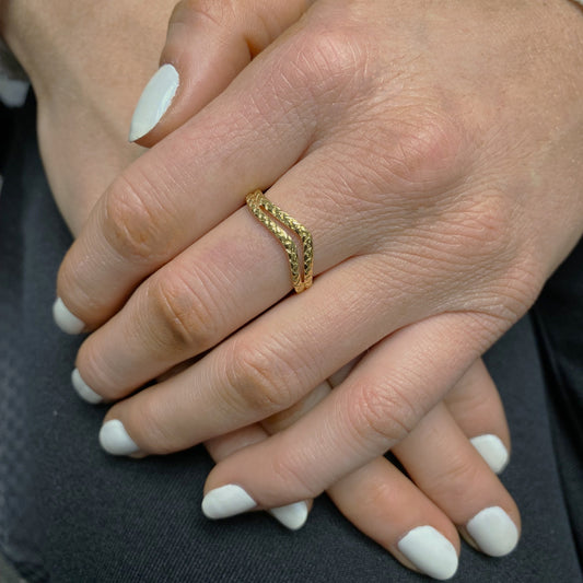Curved Chevron Split Stacking Ring in 14K Yellow Gold Sterling Silver