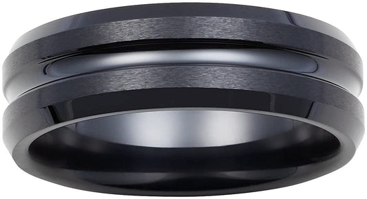 Black Ceramic 7mm Double Channel Groove Accent Fashion or Wedding Band Ring