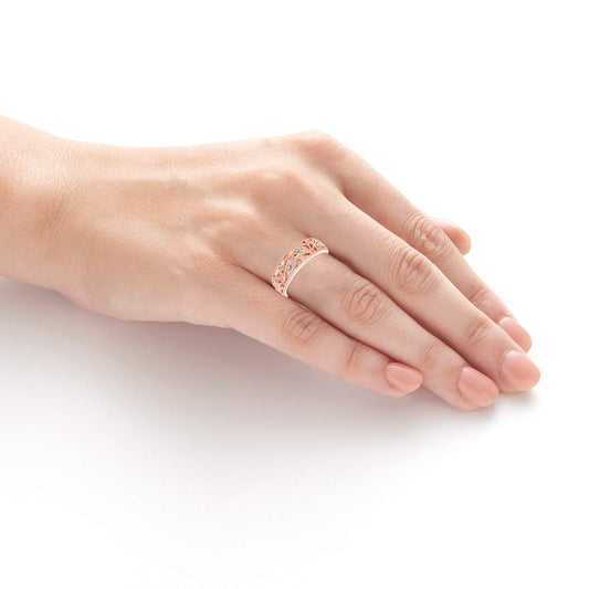 10K Rose Gold Genuine Diamond Accent Openwork Filigree Wide Band Ring