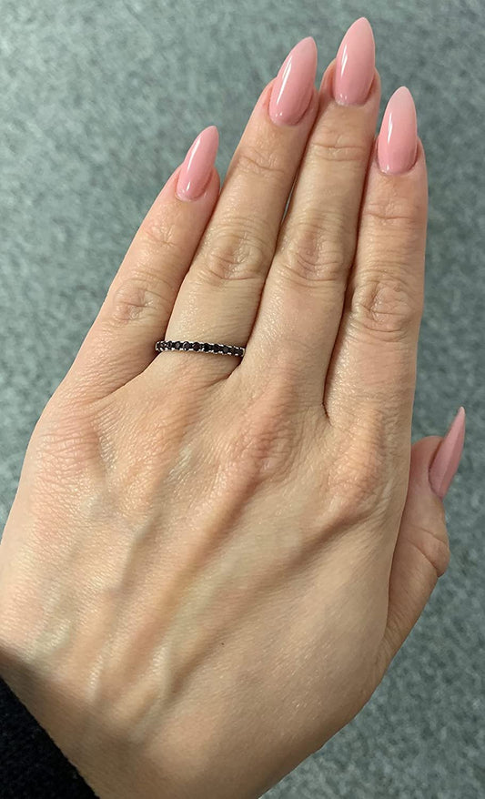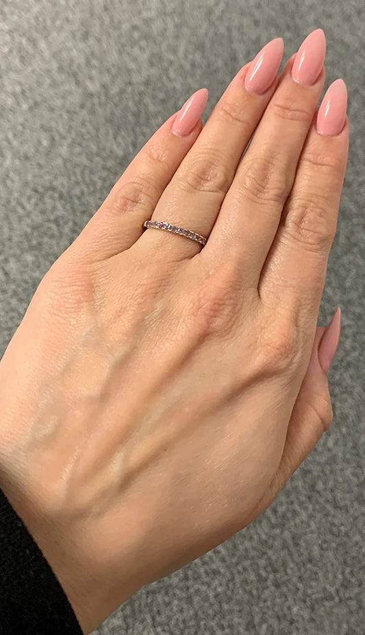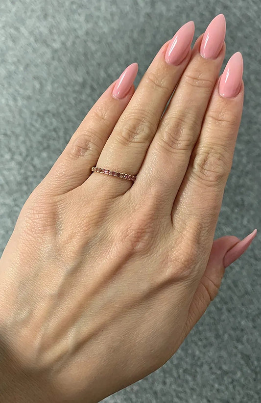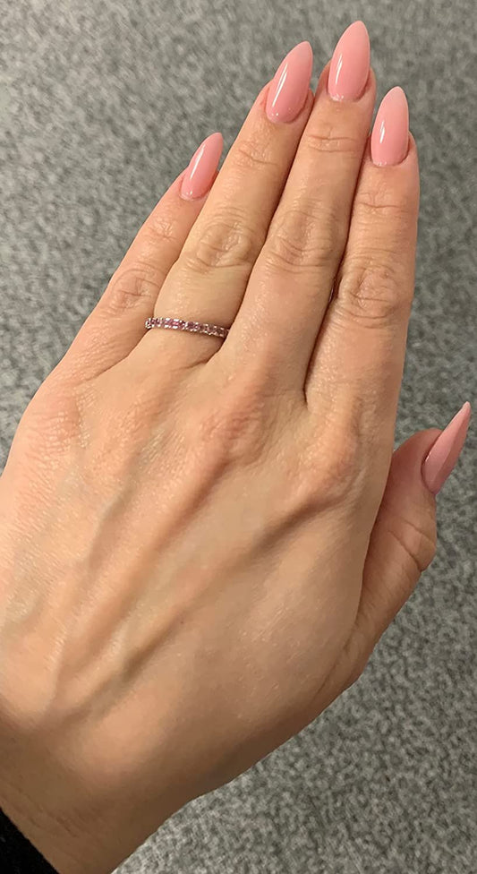10K White Gold Genuine Pink Tourmaline Birthstone Stacking Ring