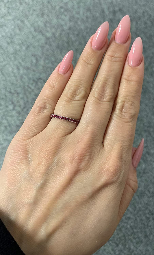 10K White Gold Genuine Ruby Birthstone Stacking Ring