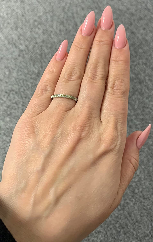 10K White Gold Genuine Peridot Birthstone Stacking Ring