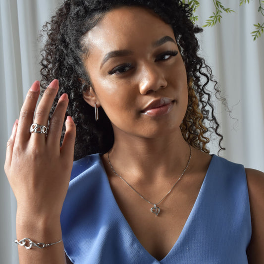 Sterling Silver Open Linked Heart- Wide Band Ring