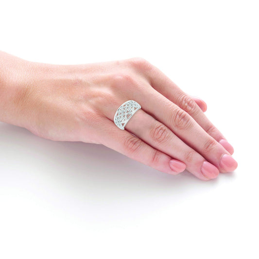 1/10cttw Genuine Diamond Flower Openwork Statement Ring in Sterling Silver