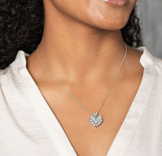 1/10cttw Genuine Diamond Heart Vintage Locket Pendant in Sterling Silver