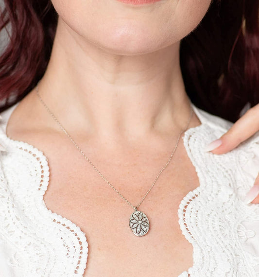 1/10cttw Genuine Diamond Oval Vintage Locket Pendant in Sterling Silver