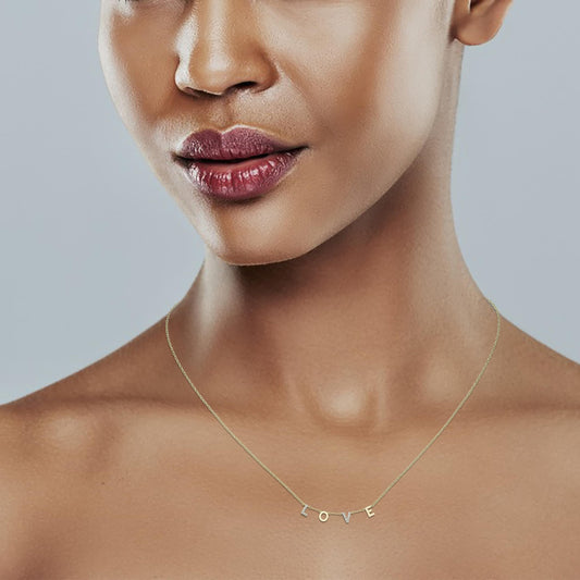 1/12cttw Diamond LOVE 20" Necklace in 14K Yellow Gold Plated Sterling Silver