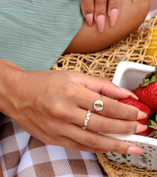 1/8cttw Diamond Open Circle Ring in 14K Yellow Gold Plated Sterling Silver