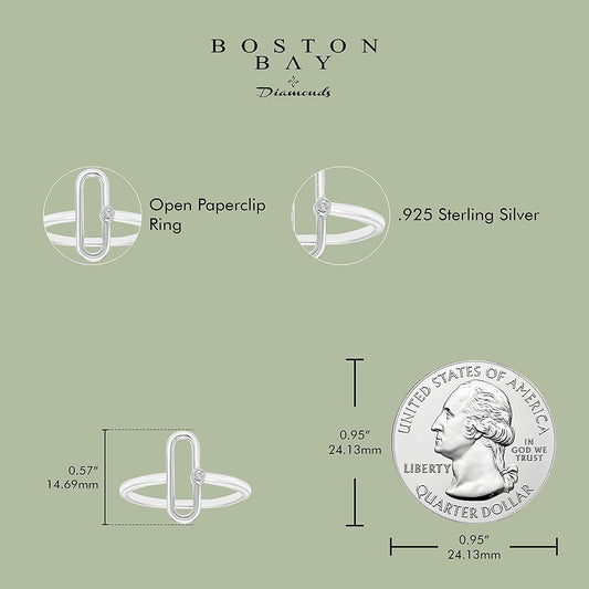 Diamond Accented Open Paperclip Ring in .925 Sterling Silver