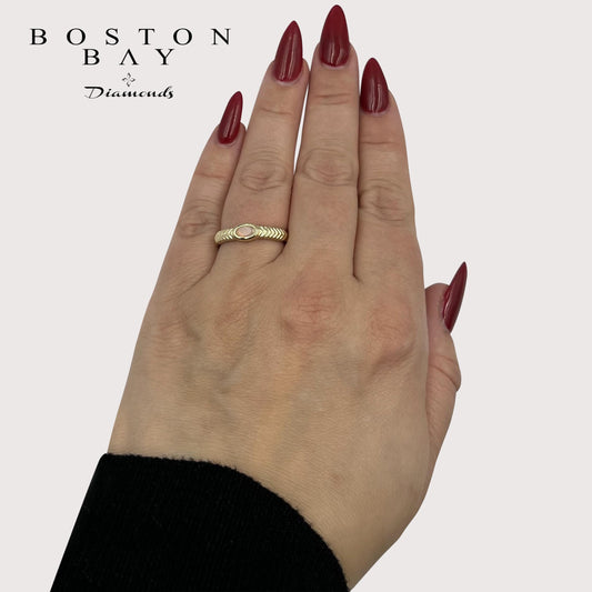 10 October - Solitaire Genuine Opal Gemstone Rope Halo Solitaire Stacking Ring in Sterling Silver