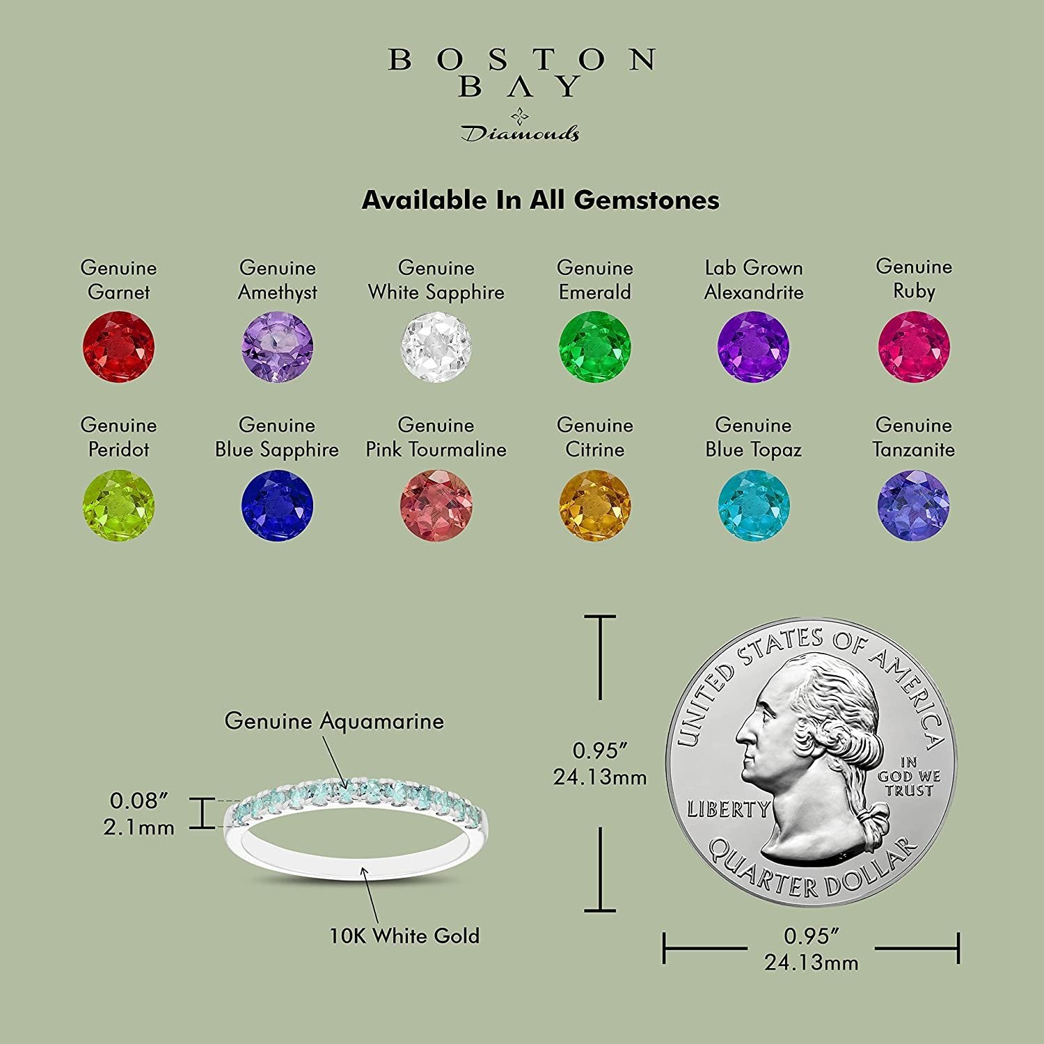 - ONLY THE BEST – Bring a smile to her face with this exceptional quality ring new to Boston Bay Diamonds’ collection. Our 10 karat gold gemstone band ring features a row of twelve round sparkling stones in a split prong setting with a polished band in your choice of yellow or rhodium plated white gold. Select your favorite gem to honor a birthday or anniversary. Wear this ring alone or stack it for a unique look! This stunning style is a timeless treasure she'll enjoy wearing every day.