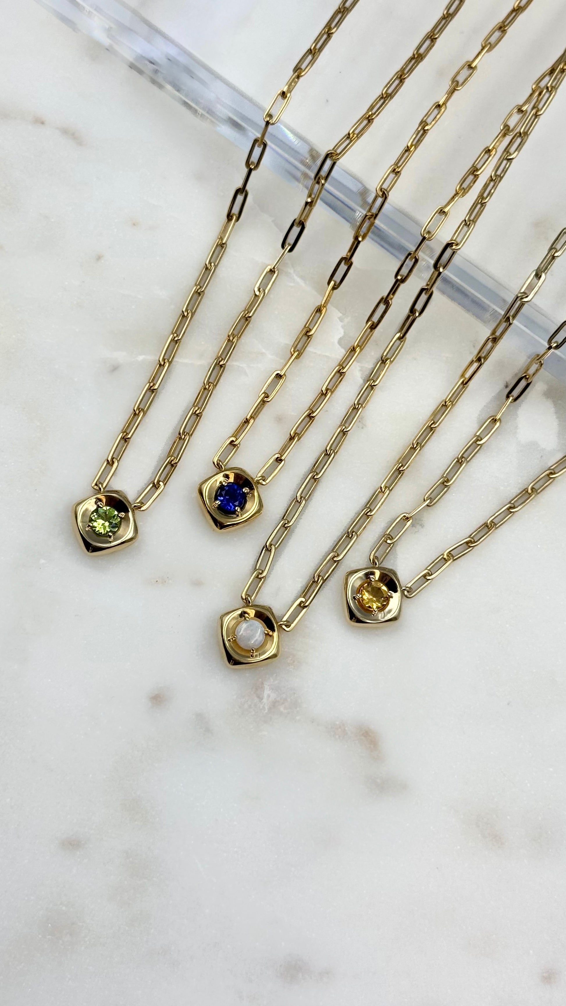 Celebrate Every Moment: 14K Gold Plated Sterling Silver Birthstone Paperclip Chain Necklace – Adjustable, Elegant, and Meaningful