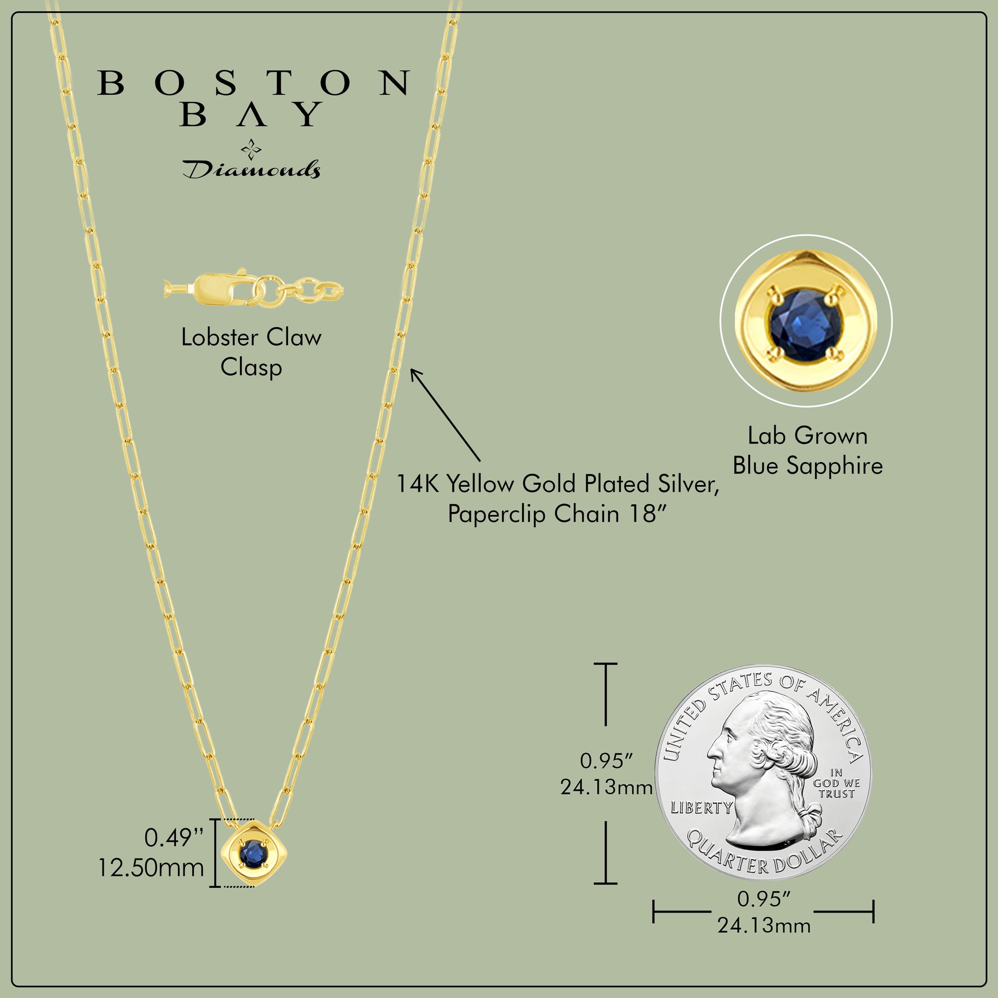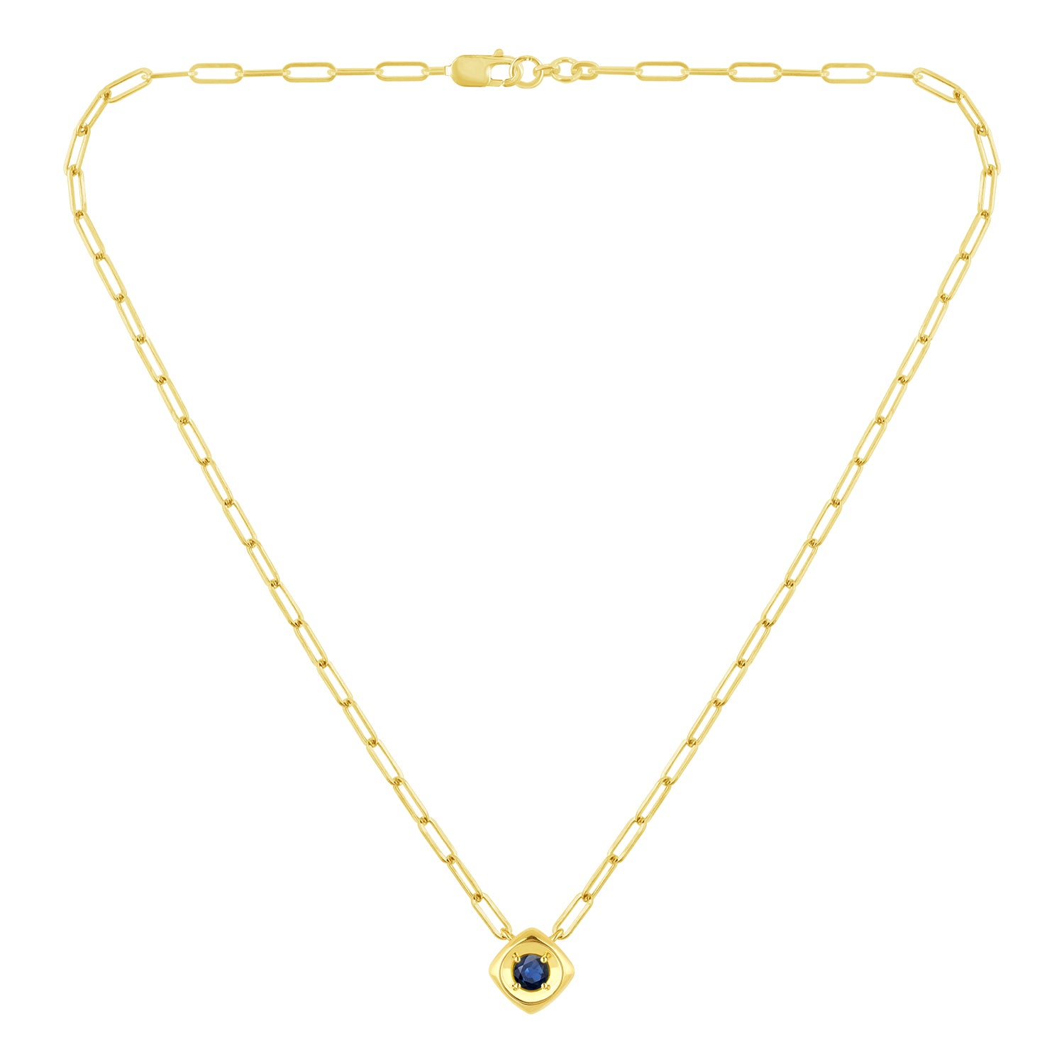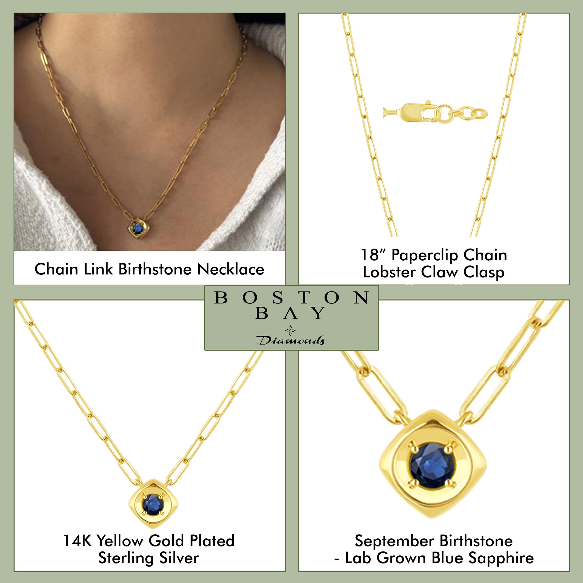 14K Yellow Gold Plated Sterling Silver Lab-Grown Blue Sapphire Paperclip Chain Link Necklace, 18"