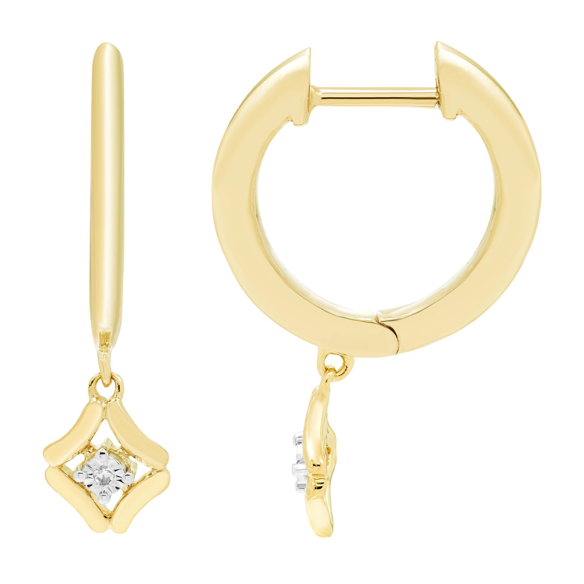 Diamond Drop Earrings in 14K Yellow Gold Plated Sterling Silver