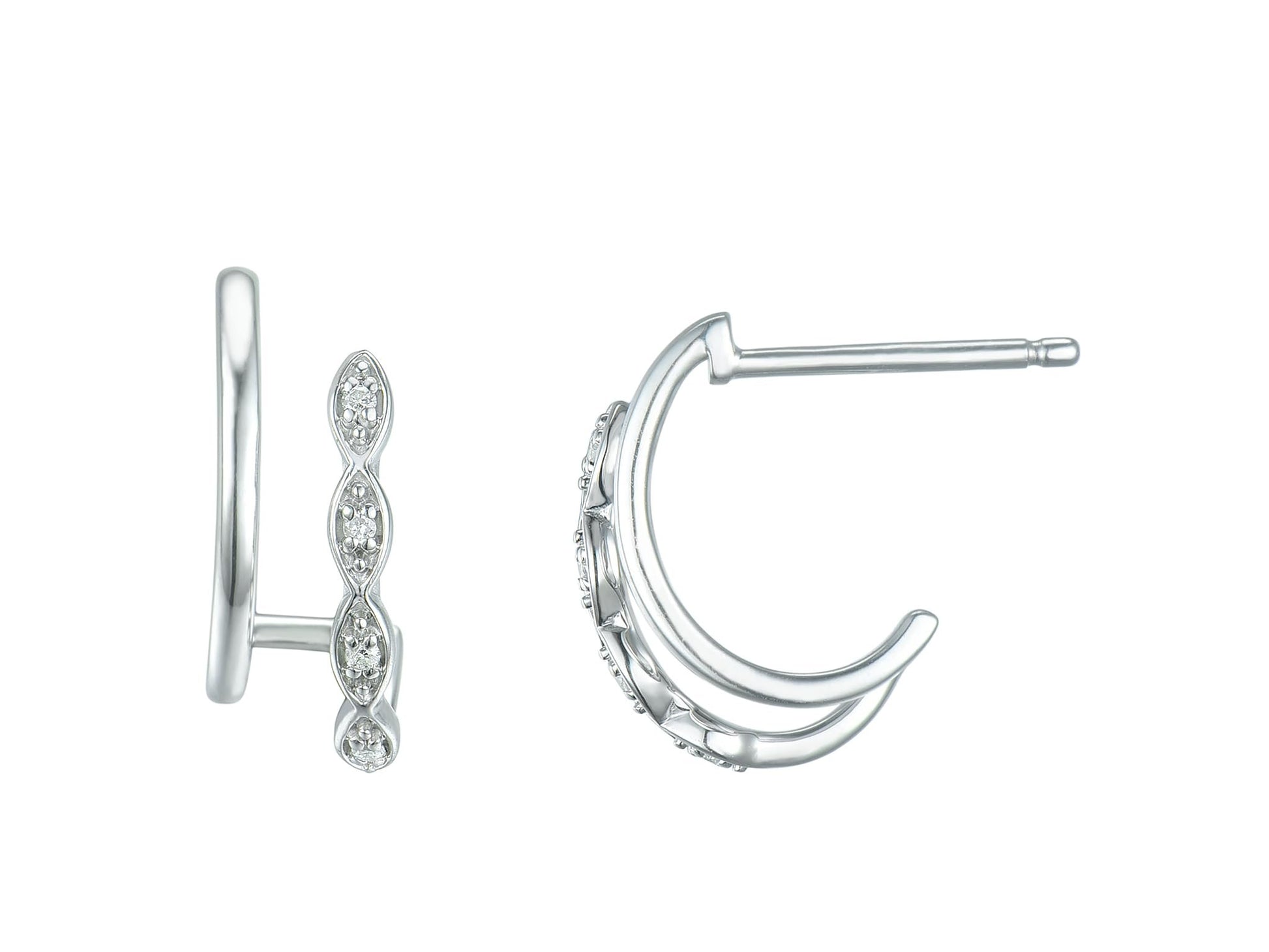 Diamond Twin Hoop Earrings in Sterling Silver