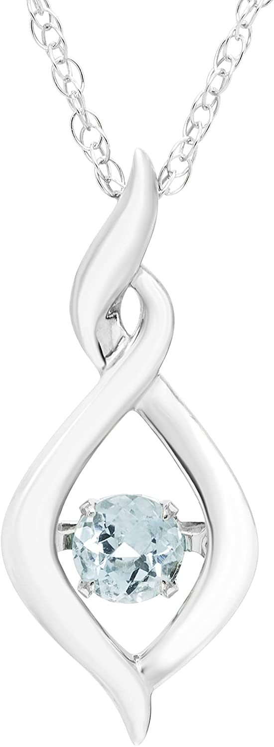 - GEMSTONES THAT DANCE – The stunning sparkle of this exclusive style from our Gems in Motion collection will be the envy of all your friends! The unique tension setting of the central stone allows it to dance and flutter continuously with every movement you make. This ONLY THE BEST – Gleaming .925 sterling silver infinity twist pendant comes plated in rhodium or 14KT yellow gold in your choice of gemstone. Make her eyes light up with joy with this Dancing Gemstone pendant necklace today!