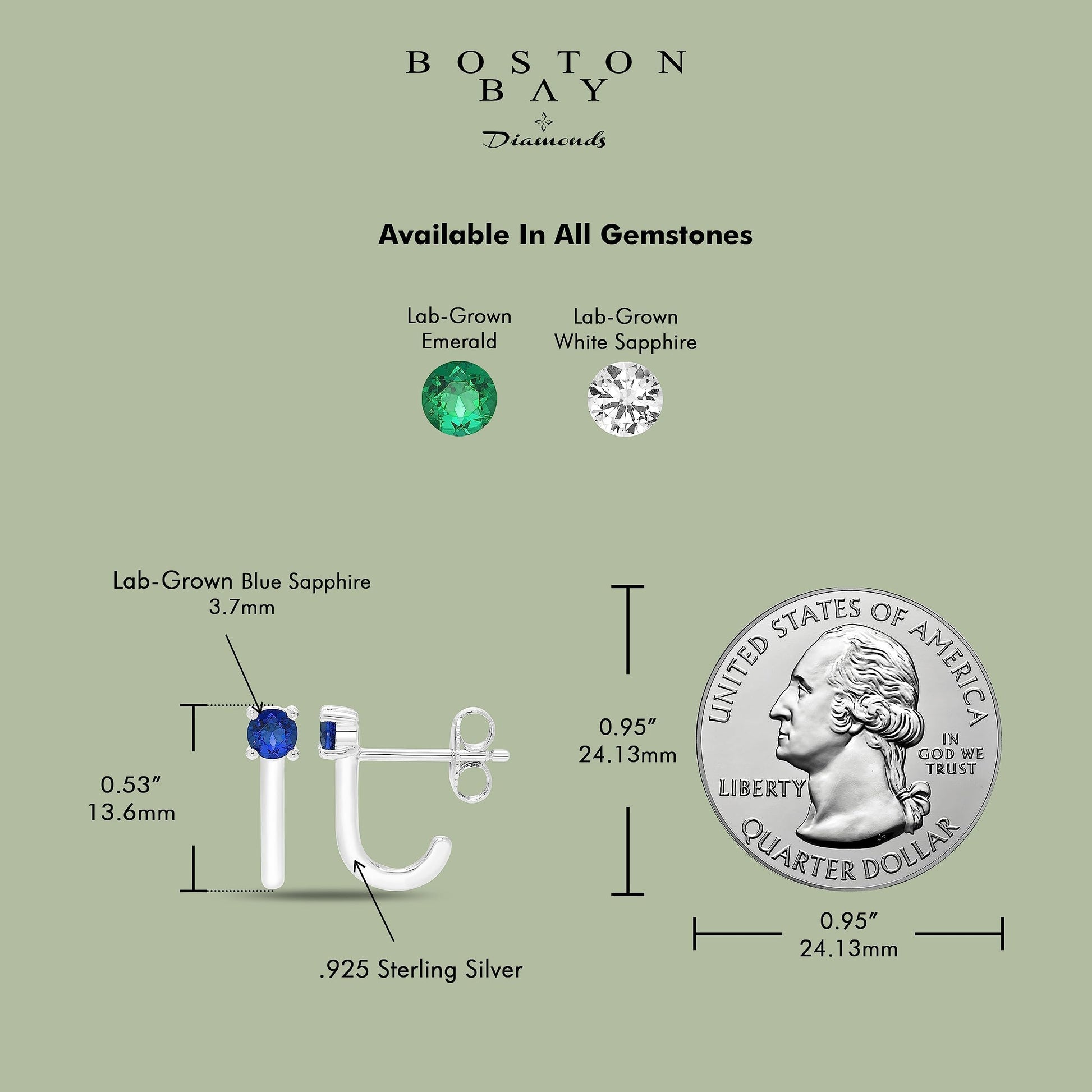 Experience contemporary elegance with these stunning earrings from Boston Bay Diamonds. The glamorous design features a J-shaped half hoop that measures 1/2" long, with a dazzling round lab-grown Emerald gemstone at the top of the hoop post. The earrings feature double-notched friction posts with butterfly back closures, ensuring they stay securely in place. Made from genuine .925 sterling silver and expertly polished to a near-mirror finish, these earrings are perfect for adding a touch of luxury to both special occasions and everyday wear.