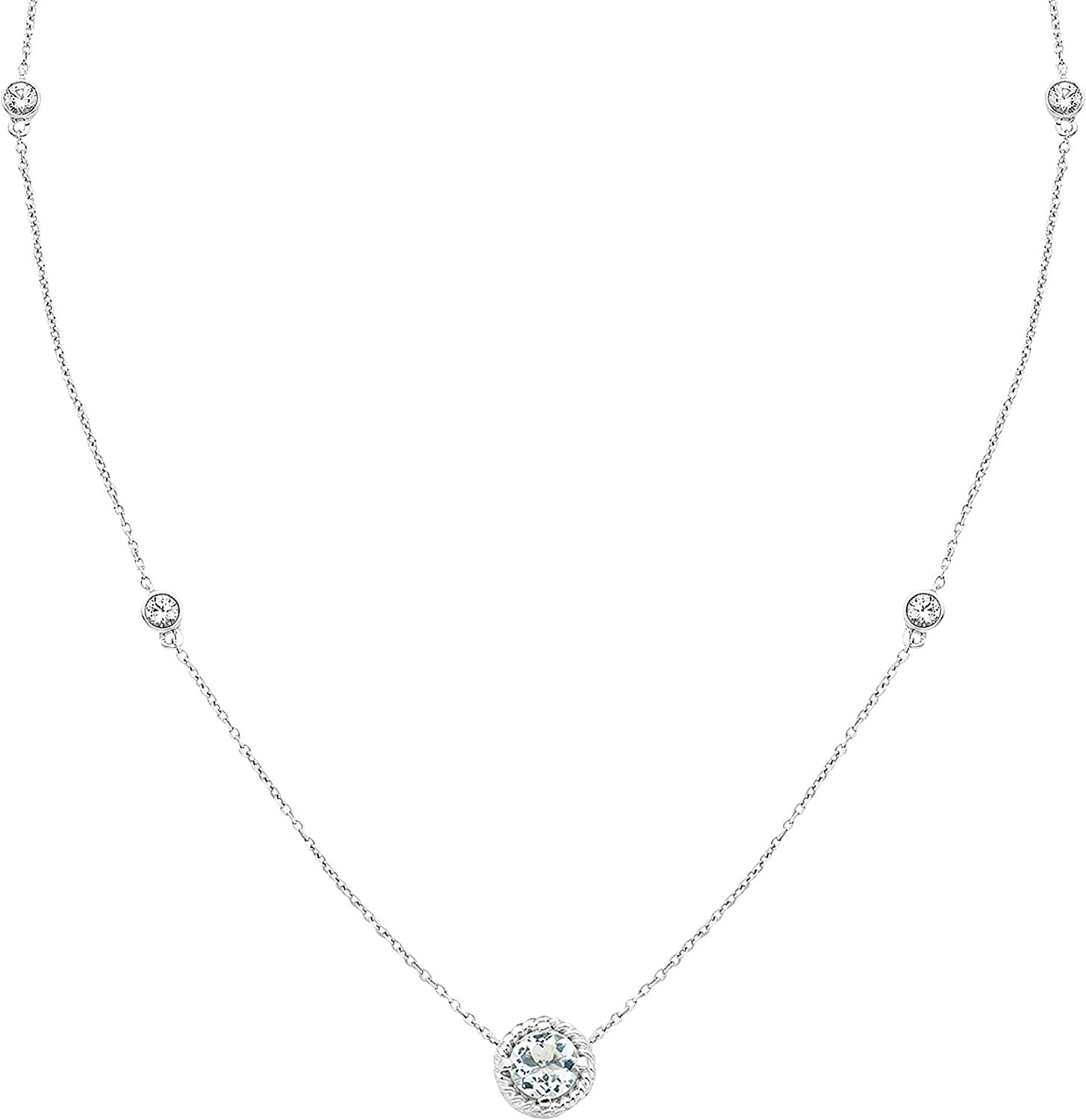 Sterling Silver Genuine Aquamarine & Lab-Grown White Sapphire Necklace, 20" cable chain